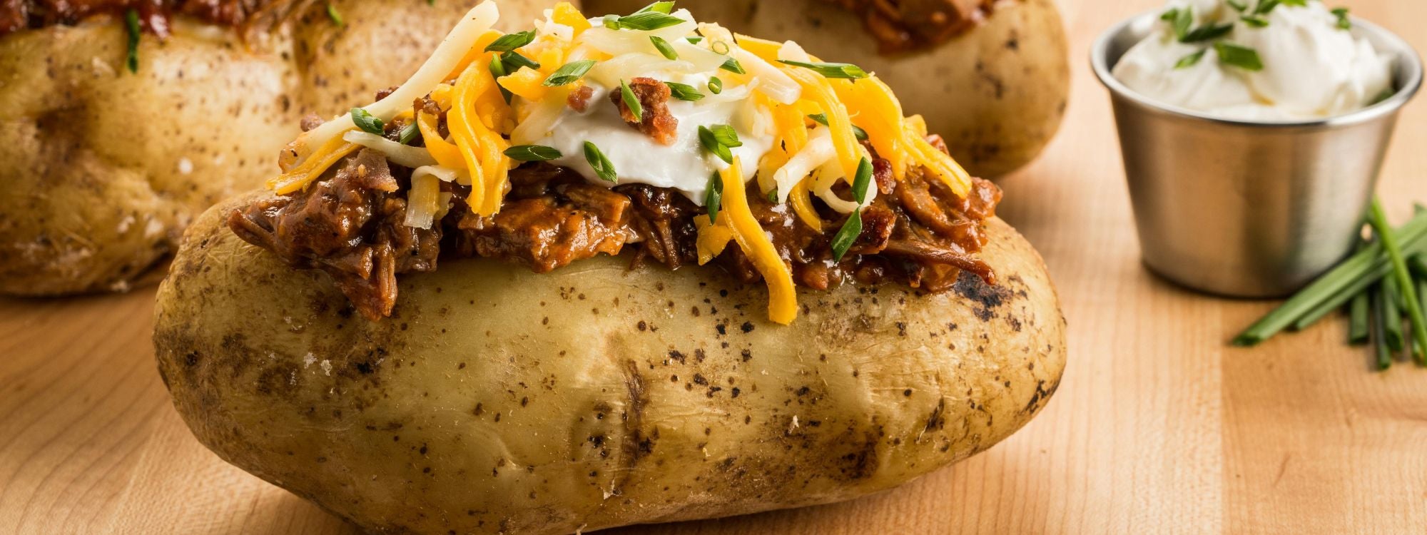 Oven-baked potatoes with classic toppings including: